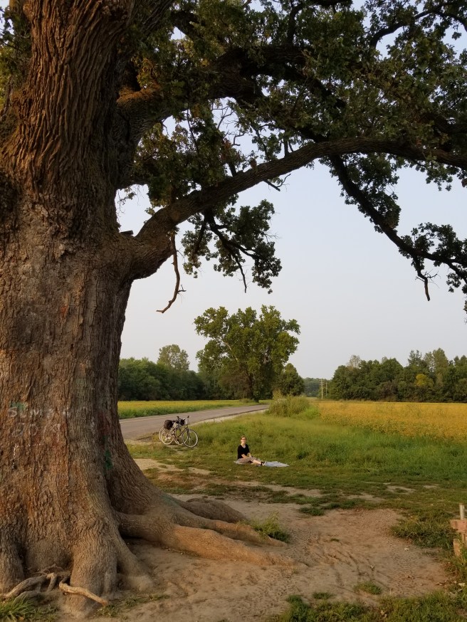 Julia and I got bikes and rode them to the most award winning Bur Oak in MO: